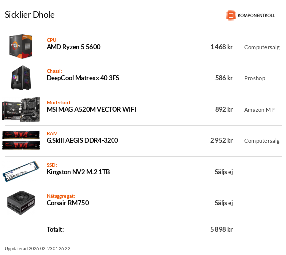 Nu har min tonårsdotter vuxit ur sin ärvda Dell Precision-laptop och vill ha en "riktig" burk att spela på. Hade kanske egentligen varit enklast att köpa något färdigbyggt, men tänker att det skulle vara ett kul och lite lärorikt projekt för oss (plus att jag har fått ett Radeon 6600 XT av en polare som uppgraderade...)