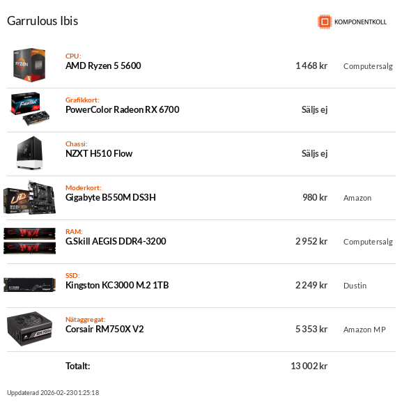 🗄️: Stronghold 🔌: RM650 (2019) 🎞️: 32 GB DDR4 3200 MHz CL16 💾: CS3030 1 TB