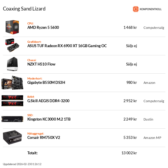 Tanken med burken är så som det ser ut nu, att de blir sista bygget och någon direkt uppgradering lär det förmodligen inte bli, eventuellt GPU om några år. När dessa delar väl börjar visa sin ålder så kommer det med högsta sannolikhet va en unge som tar all tid istället haha!