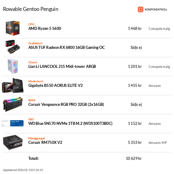 Allt utom grafikkortet(köps på Proshop) kan du beställa från Inet, för bara några tior extra så slipper du jonglera flertalet butiker.