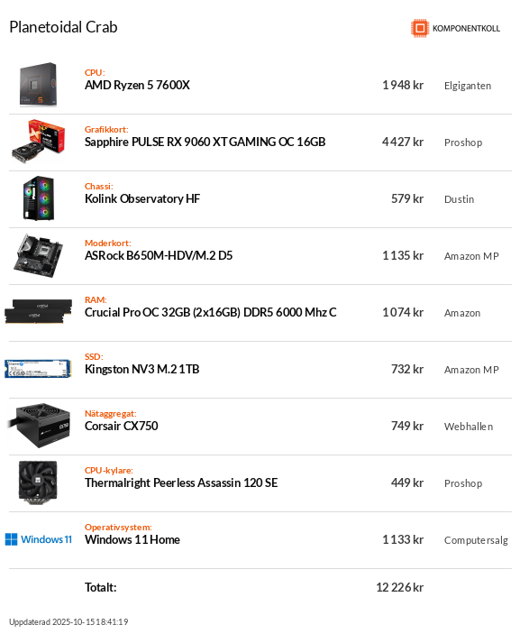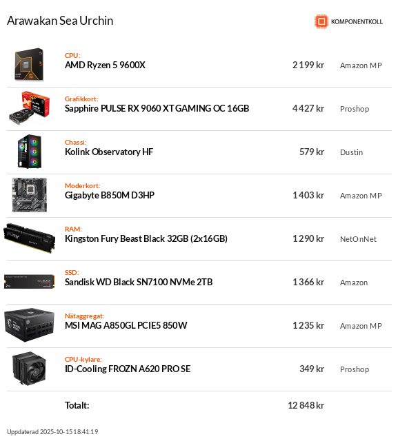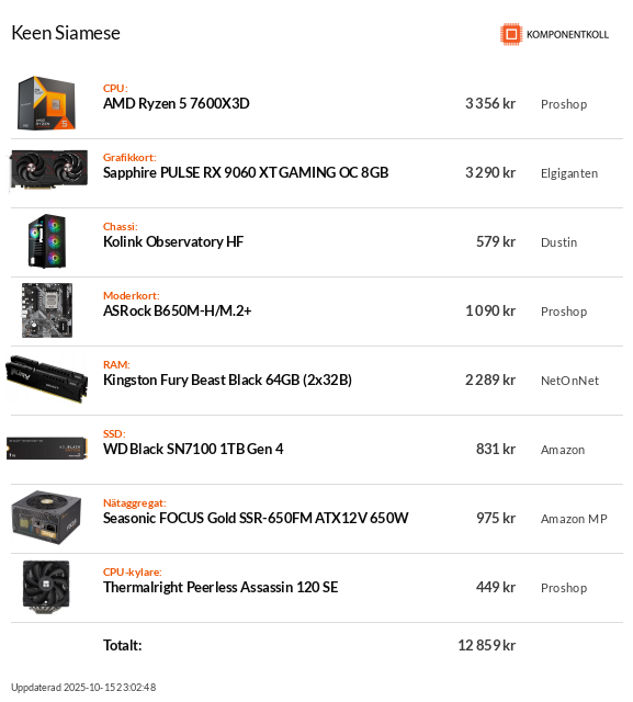 Ser ut som rena superdatorn du har plocka ihop där i budget segmentet! Det ska vara billigt att bygga dator!