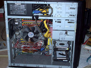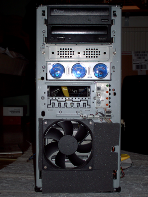 Det ljud som hördes innan kan beskrivas som... hmm... ett lågt surrande från fläktarna som knappt kan uppfattas från 4meters avstånd från datorn. Det vill säga ganska lågt. Sen har vi maxtorhårdisken som inte är särskilt tystsam av sig trotts gummiupphängningen. Den knackar på ganska ordentlig så det ska bli kul o se hur mattorna lyckas få bort det ljudet.