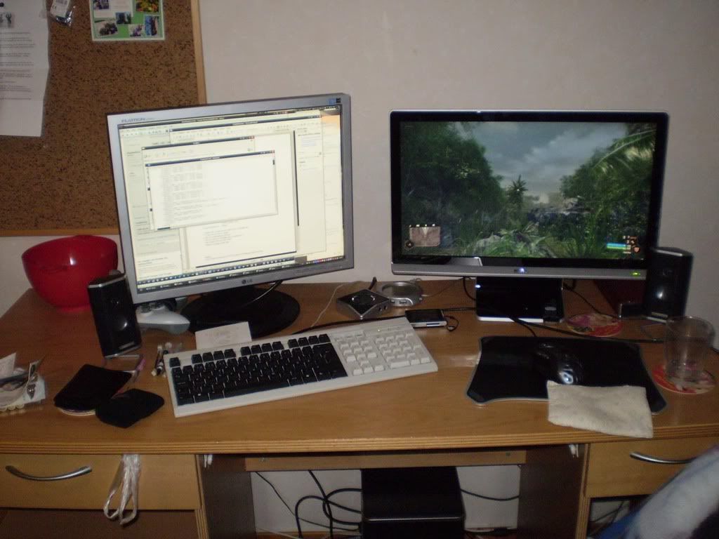 MacPro 2010 6core intel xeon @ 3.33Ghz, 32gb OWC RAM, HD5870, 2x OWC Mercury Extreme RE 200Gb SSD, 1x Corsair SSD Force 240Gb Windows 7, 2x 2tb WD RE4-GP, 2x 27" Apple Cinema Display, Bose Companion 5, Wacom Intuos 4 XL, Apple Magic mouse, Track Pad, Wireless Keyboard