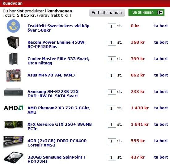 i5 750, asrock p55 extreme, corsair 4 gb 1600 mhz, hd5850, spinpoint f3, chieftec 750 w modulärt, fd define r2, 2 x 22"