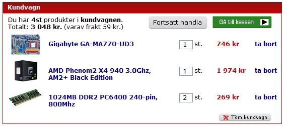 Det jag behöver hjälp med är vad jag ska köpa istället för dessa delar. Hade tänkt mig ca 3000 kr totalt och AM3, men är öppen för förslag