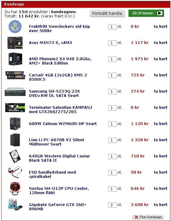 Intel i5 @ 2,66Ghz | Noctua NH-D14 | 4gb corsair 1600mhz | Asus P7P55D-E PRO | Antec p182 | Corsair 550w |Asus 6950 2gb upplåsta shaders, ASUS 5770 V2|Samsung SpinPoint F3 1 TB |Benq BL2400PT | LG 42PQ6500 | Steelseries Siberia v1 |Asus Xonar DX |Creative EP-630 | AKG K601 | Dynavoice F-6 EX 5.0 |Canton Reference 9.2 DC | Atacama Nexus 6| Onkyo 607