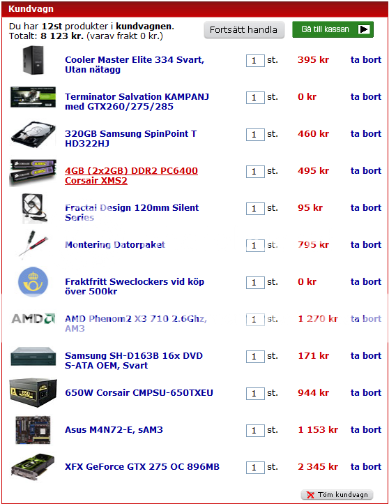 i5 750, asrock p55 extreme, corsair 4 gb 1600 mhz, hd5850, spinpoint f3, chieftec 750 w modulärt, fd define r2, 2 x 22"