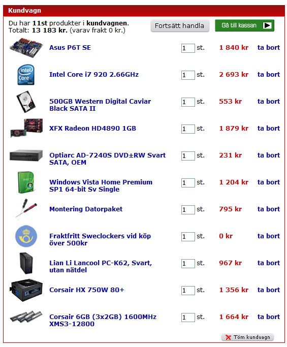| Antec 300 | Gigabyte MA770-UD3 | AMD Phenom2 X2 550 3,1Ghz | Sapphire 5770 | 500W | 4 gig Corsair Value ram| Samsung 1Tb| LG DVD Burner | Razer Deathadder |22" Fujitsu Siemens|