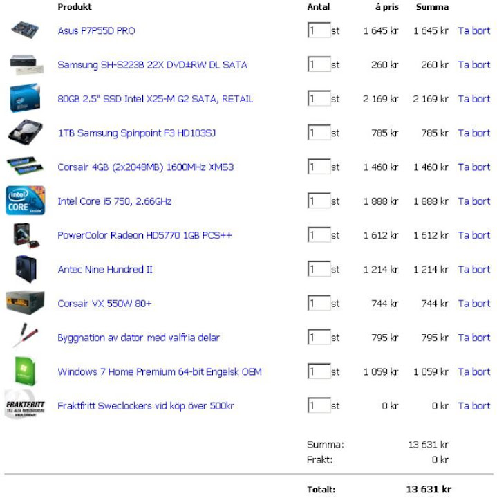 intel i7 920 @ 4000Mhz / Asus P6T Deluxe V2 / Corsair 6GB DDR3 Dominator @ 1600Mhz / 2st Gigabyte 460 GTX 1GB @ 850/1700/4400Mhz SLI / HDD1: Corsair Force 120GB HDD2: WD Black 1TB / Antec Twelvehundred / Corsair 750W HX / Win7 64Bit SWE