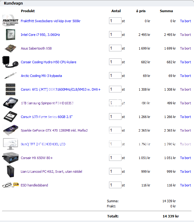 CPU: Intel Haswell i5-4670K 3.4GHz | CPU-KYLARE: Corsair H80i | MOBO: MSI Z87-G45 Gaming | CHASSI: Fractal Design Define R3 (Svart) | RAM: Corsair Vengeance 2x8GB| GPU: MSI GTX 1080 Gaming X | PSU: Corsair HX650 650W | SSD: A-Data Premier Pro SP900 128GB | SSD: Samsung EVO 850 512GB