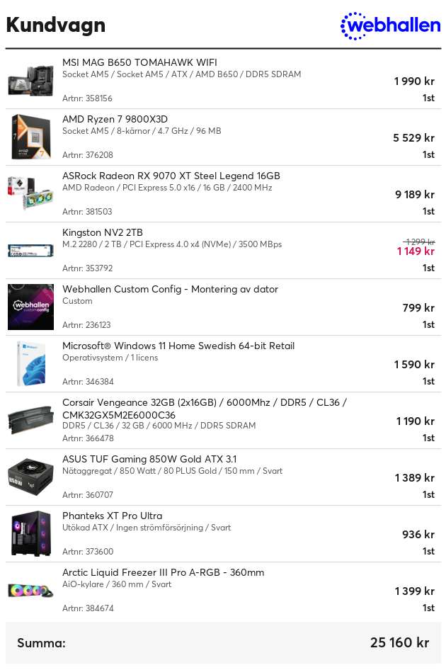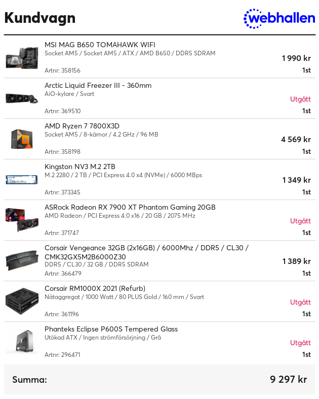 Angående moderkortet är den inte dåligt, inte alls men den Rog Strix B650E-F verkar vara kanske mer för pengarna.