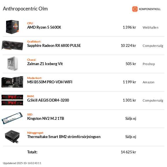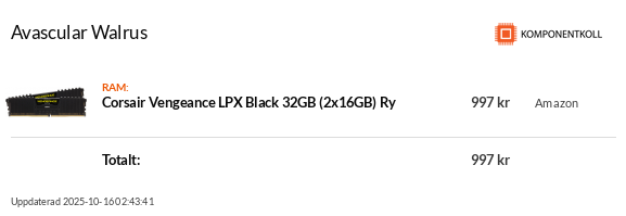 Valde också 6000mhz rgb ram. Det kostar 100kr mer och ger ändå mer preformance.