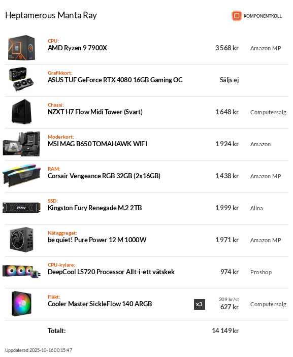 Har läst att många rekommenderar 6000MHz som sweet spot för ryzen 7000, jag tog det snabbare minnet mycket för den lägre latensen. Tänkte att i värsta fall så kan man skruva ned frekvensen något och har bara slösat någon hundring mot 6000CL32, men nu mer så kanske folk kör på XMP/EXPO rakt av istället för att klocka manuellt. RGB är helt ointressant eftersom stickorna ska in i ett slutet chassi i ett skåp, men priset på det där kittet var ju bra, så kanske blir det ändå.
