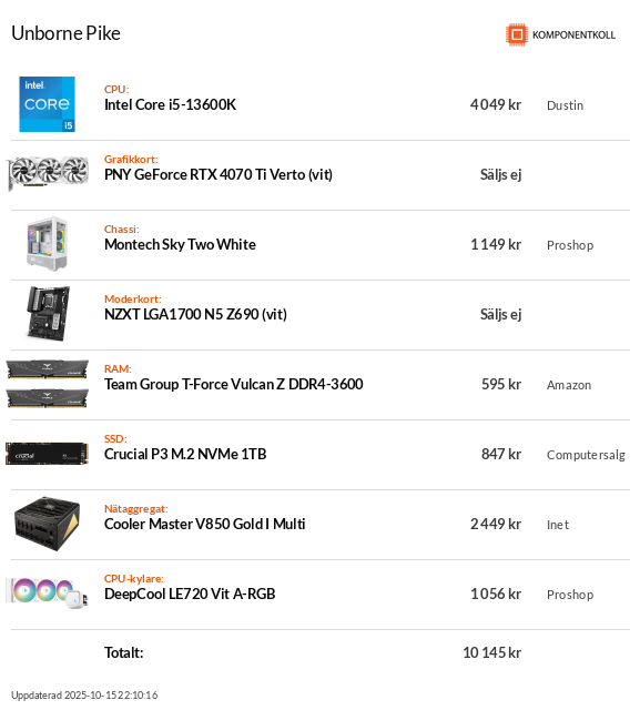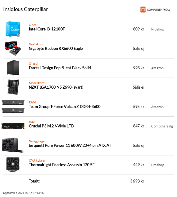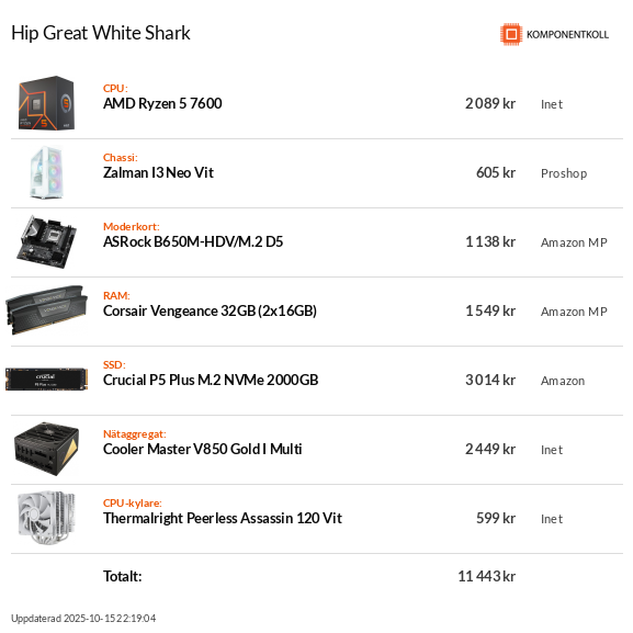 Har surfat vidare och helt fallit för Fractal Design North chassit. Hittade en annan tråd där du kommenterat med cirka samma specs för just det chassit (länk) så tog lite inspiration från den.