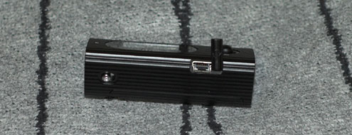 För att föra över filer till Iriver T60 ansluts en usb-sladd i usb-ingången ovan. Den här ingången är gömd bakom ett litet plastskydd.