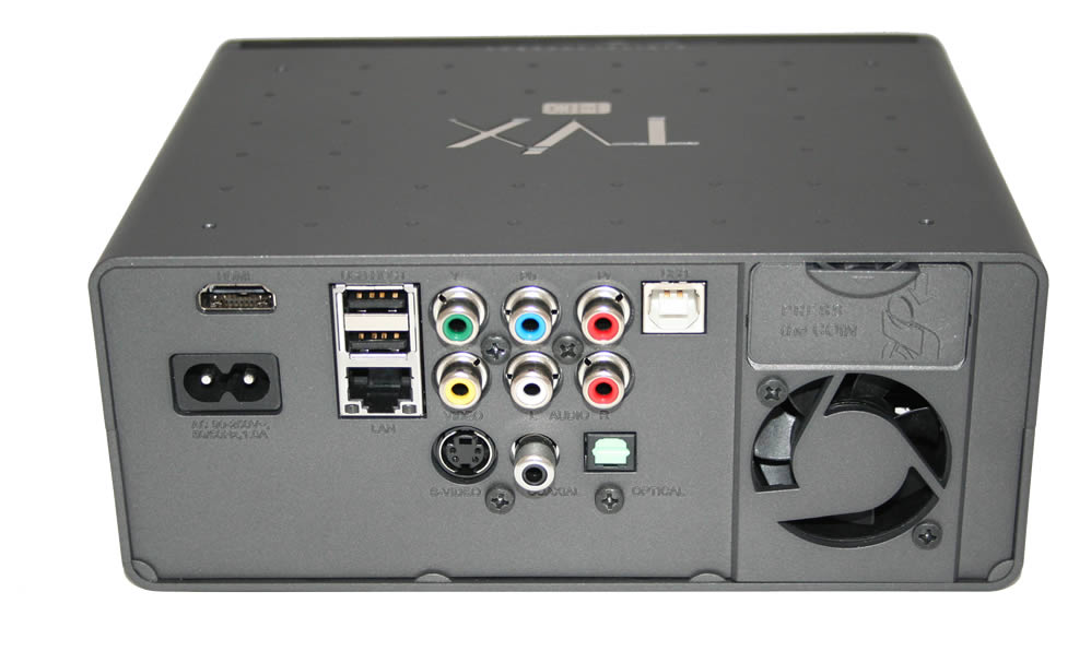 På baksidan av spelaren hittar vi alla anslutningar vi kan behöva. Notera att det både finns en koaxial och en optisk ljudutgång. Vi ser här också USB-porten som låter dig ansluta Tvixen till en dator.