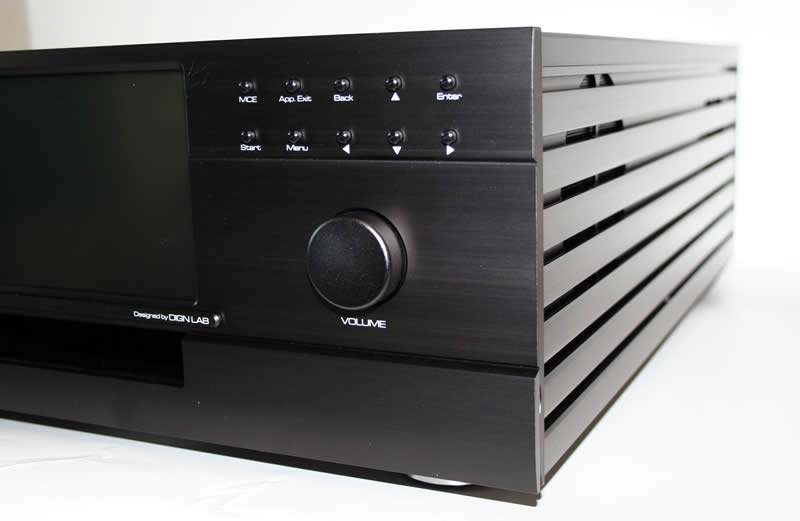 Bredvid på/av-knappen hittar vi även IR-ögat samt en lampa som indikerar när hårddisken används. Precis som på många andra HTPC-lådor saknas en knapp för att starta om datorn.