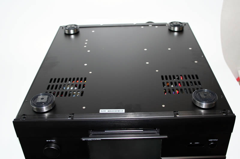 Till och med undersidan av lådan är svart. Fyra gummibeklädda fötter ser till att lådan står stadigt. Även på undersidan hittar vi ventilationshål. Dessa sitter bra placerade direkt under eventuella hårddiskar och hjälper till att hålla dessa kylda.