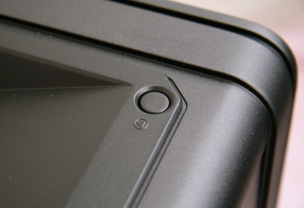 Nedanför platserna för 5,25-tumsenheter hittar vi startknappen som är tillverkad av plast. Nedanför startknappen har tillverkaren valt att placera lysdioder som indikerar om datorn är igång (blått ljus) samt hårddiskaktivitet (rött ljus).