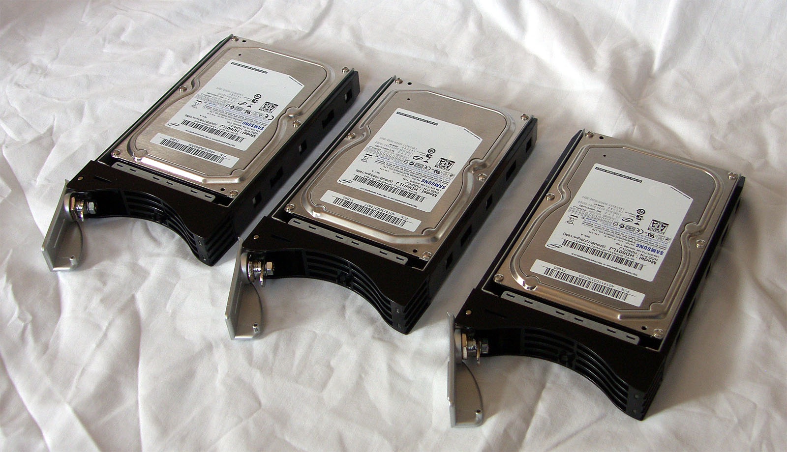 Tre stycken dockor med hårddiskar i. I denna recension valde vi att använda fyra stycken 500-gigabyteshårddiskar från Samsung. Modellnumret är HD501LJ. De har en rotationshastighet om 7200 varv per minut och har en buffer om 16 megabyte.