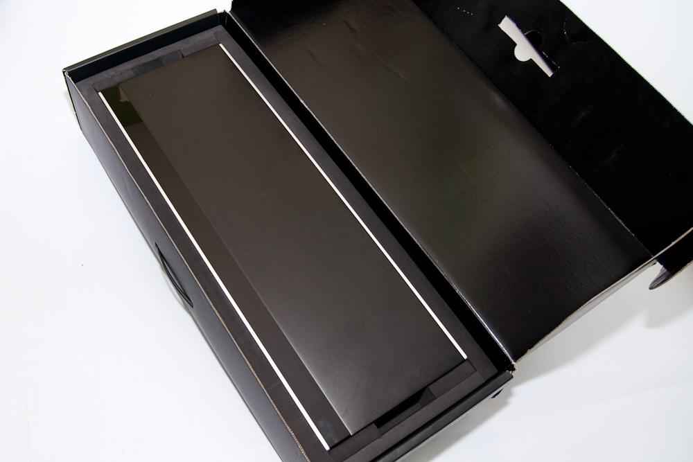 Omaura TT levereras i en diskret och stilren mattsvart kartong som andas kvalitet. På utsidan finns sparsamt med information, endast chassits namn och tillverkningsland.
